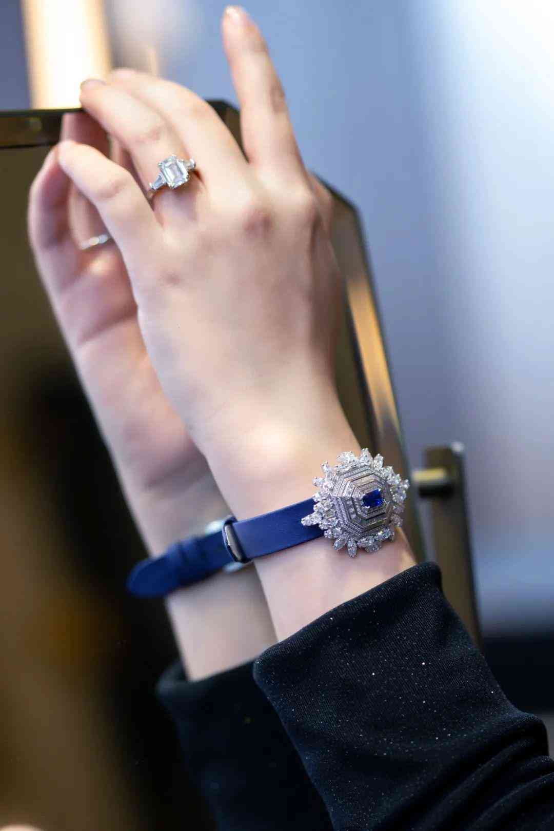 作为HW的标志性作品,它既是腕表也是珍奇珠宝,极尽奢华闪耀。可旋转式表盖让人忍不住细细把玩,之前范主还佩戴过蓝宝石款,当时就被深深震撼。在读取时间的同时欣赏湛蓝的表盘,仿佛波光粼粼的湖面,极尽诗意浪漫。