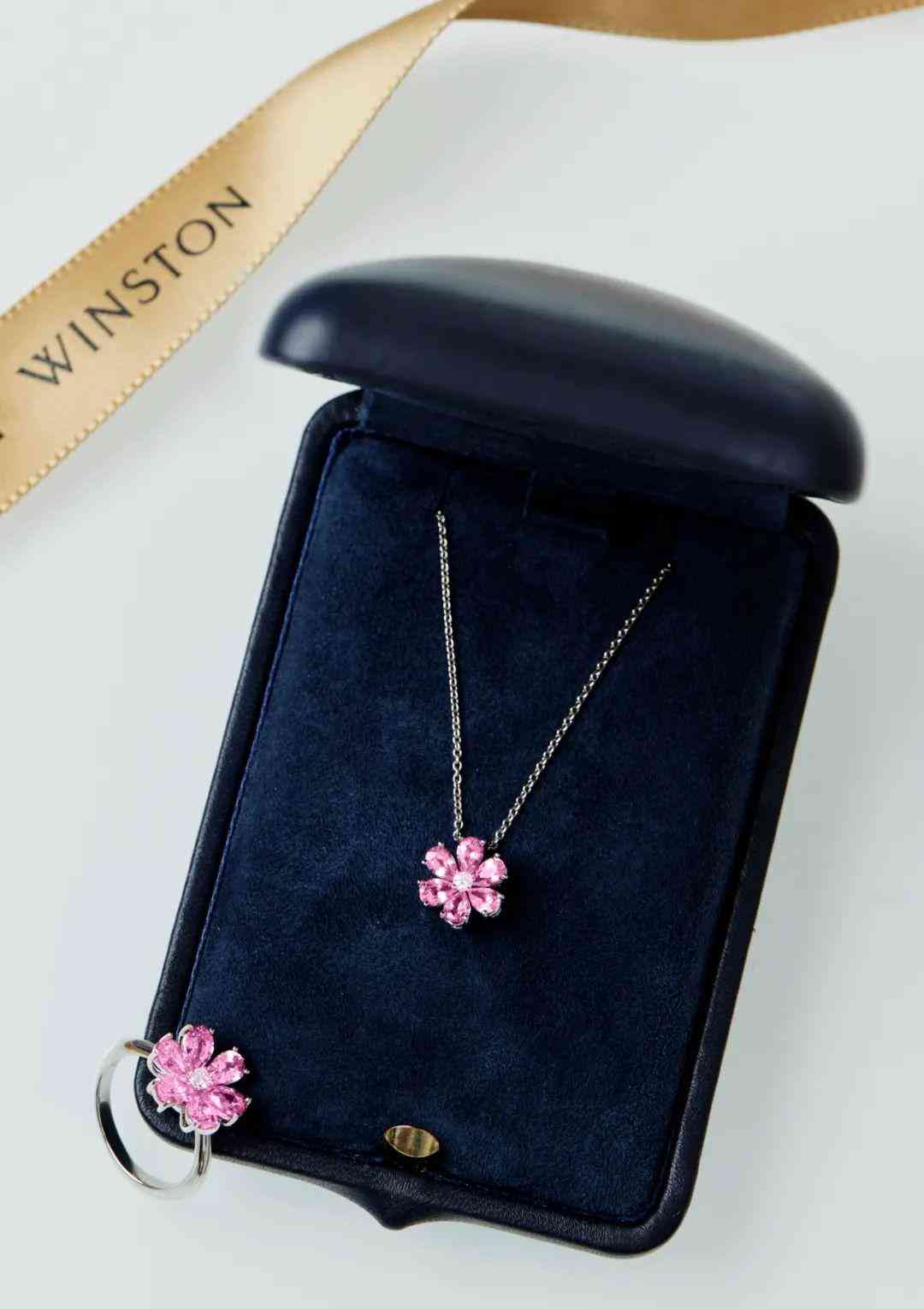 除了优雅深邃的蓝宝石,还有粉色蓝宝石款可选。清透粉色搭配无瑕美钻,又多了几分少女的温柔浪漫。