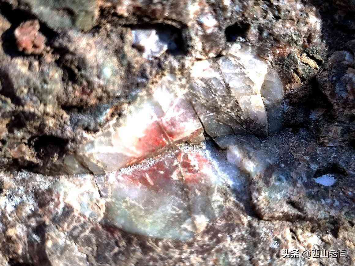 将画面集中在玛瑙部分,已经无可争议地看出玛瑙了。这里的玛瑙不仅成玉髓状,甚至带有鸡血状了。