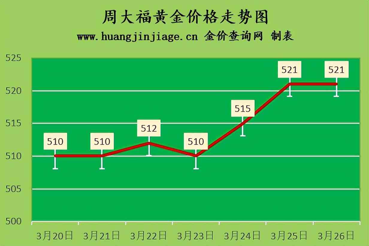 周大福黄金价格521元/克(–),六福黄金价格522元/克(–),周生生黄金价格520元/克(跌1元),金至尊金价522元/克(–),谢瑞麟金价520元/克(跌1元),老凤祥黄金价格521元/克(–),老庙黄金价格519元/克(跌1元),菜百金价513元/克(–),周大生金价521元/克(-),中国黄金价格509元(–),金大福金价516元/克(–),潮宏基金价521元/克(-)。