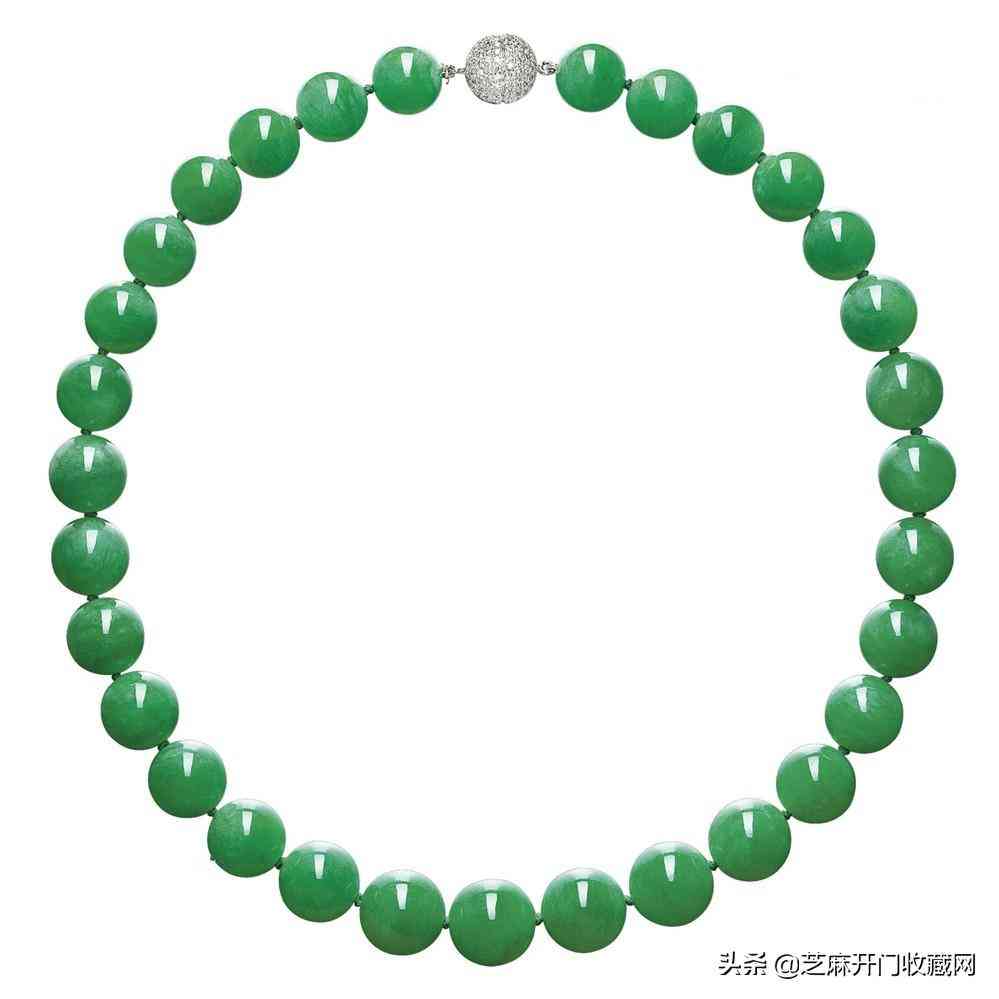 天然翡翠珠配钻石项链,估价:HKD 3,800,000 ~ 4,500,000,成交价: HKD 4,400,000