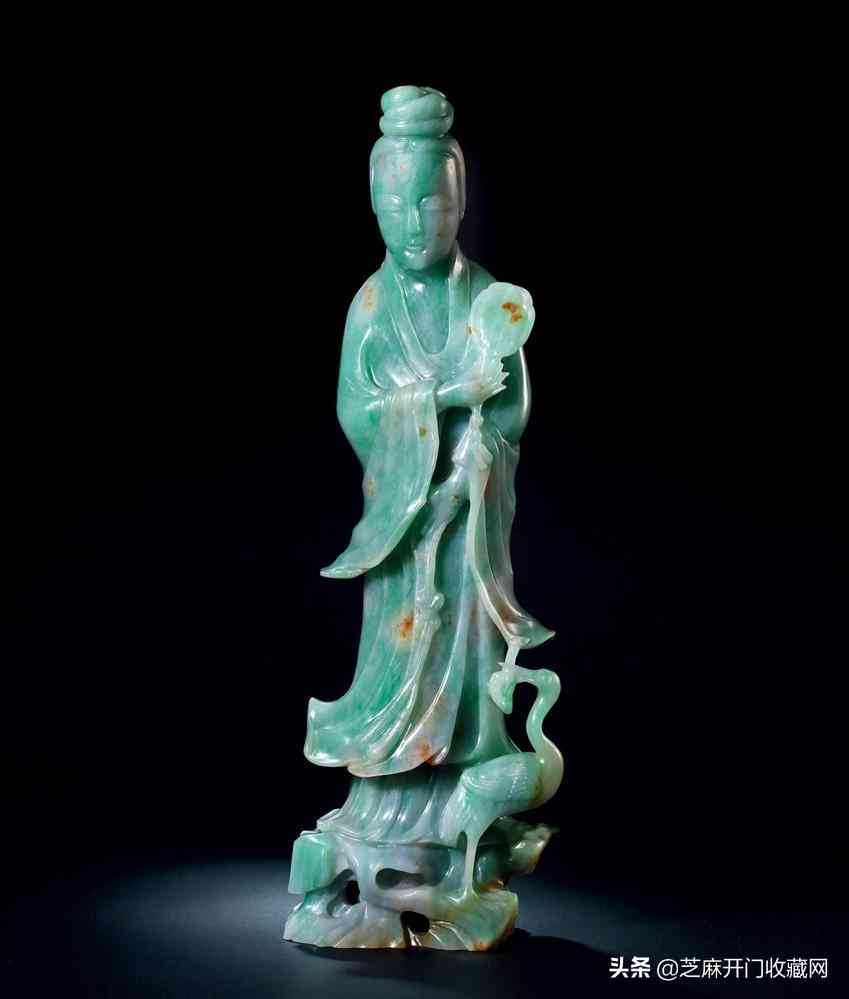 18世纪翠玉仙鹤观音,尺寸:高48厘米,估价:RMB 3,800,000 ~ 5,800,000,成交价: RMB 4,370,000