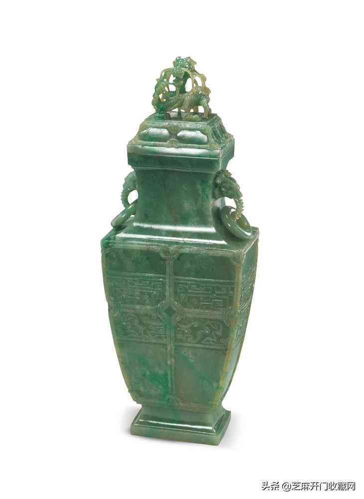 清中期翠雕兽面双耳盖瓶,尺寸:直径3.8厘米,估价:RMB 5,000,000,成交价: RMB 4,368,000