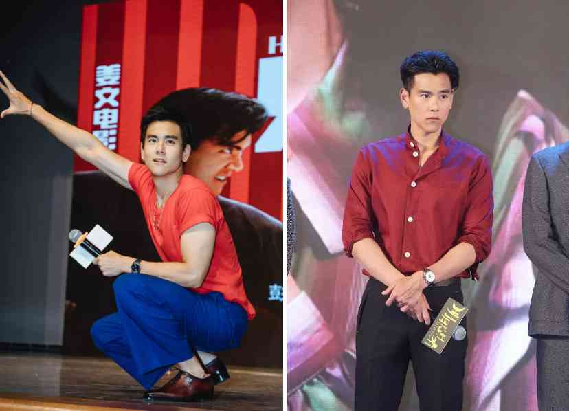 明显的深浅对比是像这套,重灰色的西装搭配白色衬衣,这是组对比色,而第二组是白色和红色的对比,矜贵儒雅。