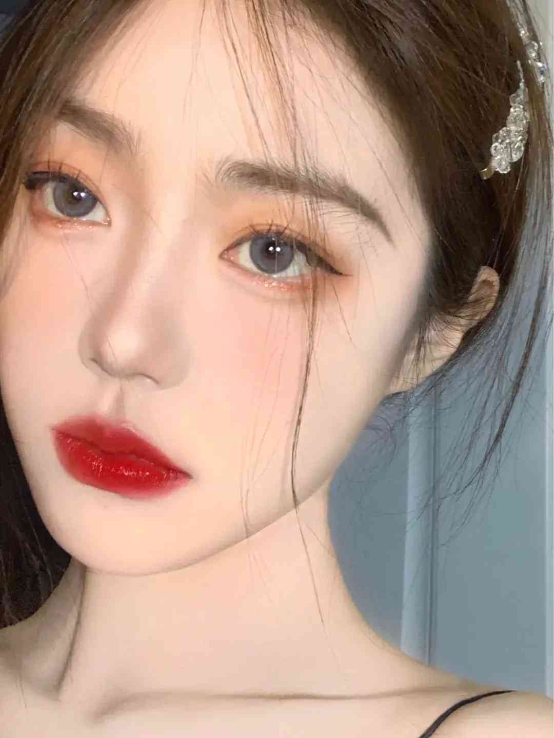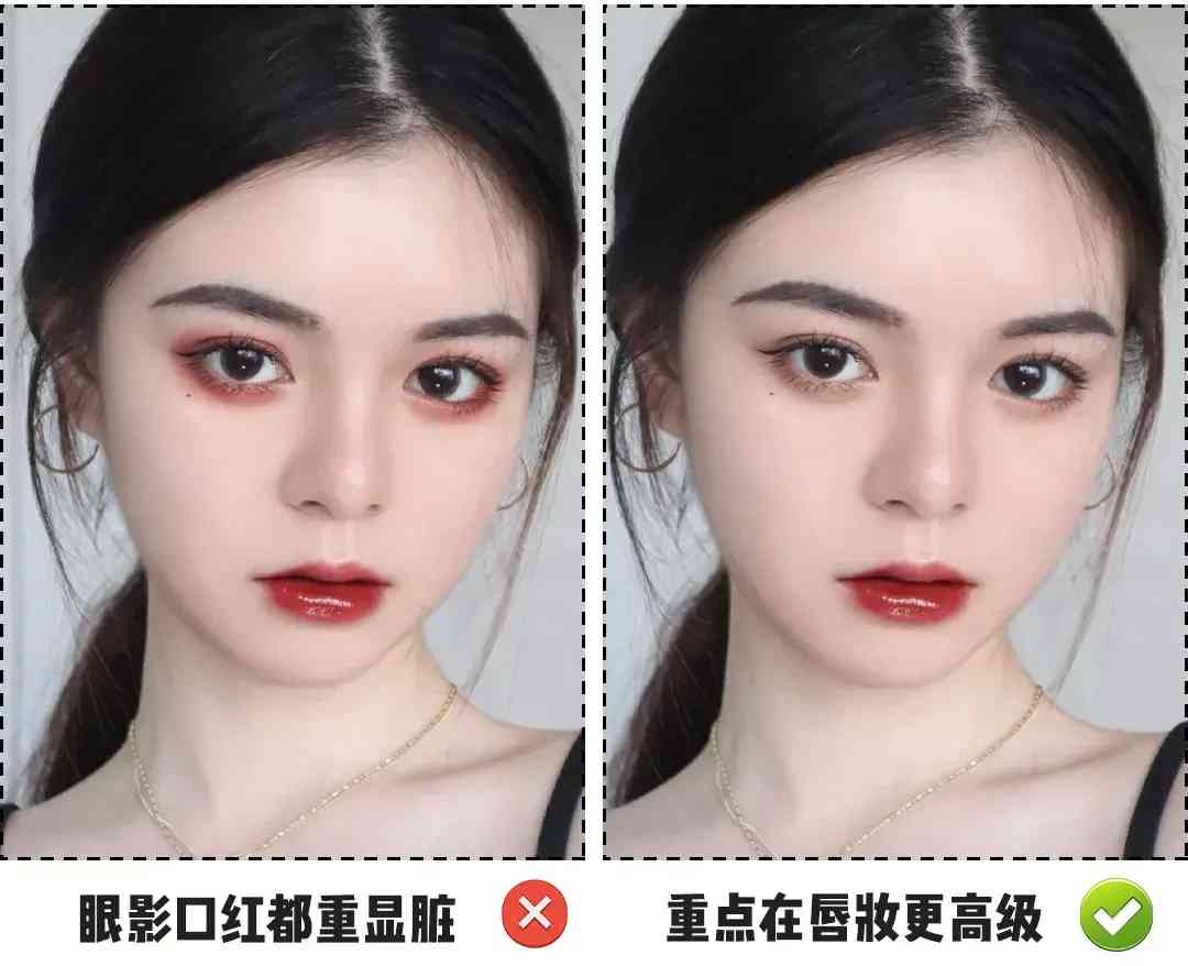 1.低饱和度眼妆+高饱和度唇妆
