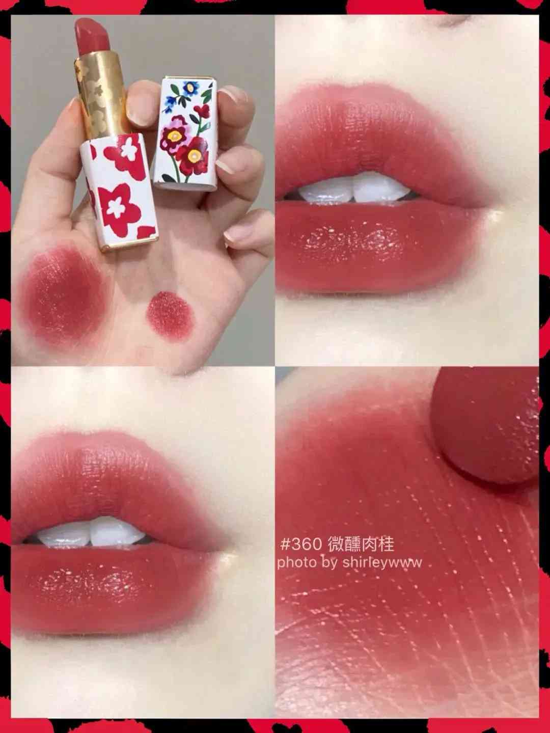 雅诗兰黛#360:上周我刚入手了雅诗兰黛家的新品,和SST合作的经典花朵,这个壳子真的太少女心了!整体是偏肉桂珊瑚红,很清纯显气色。