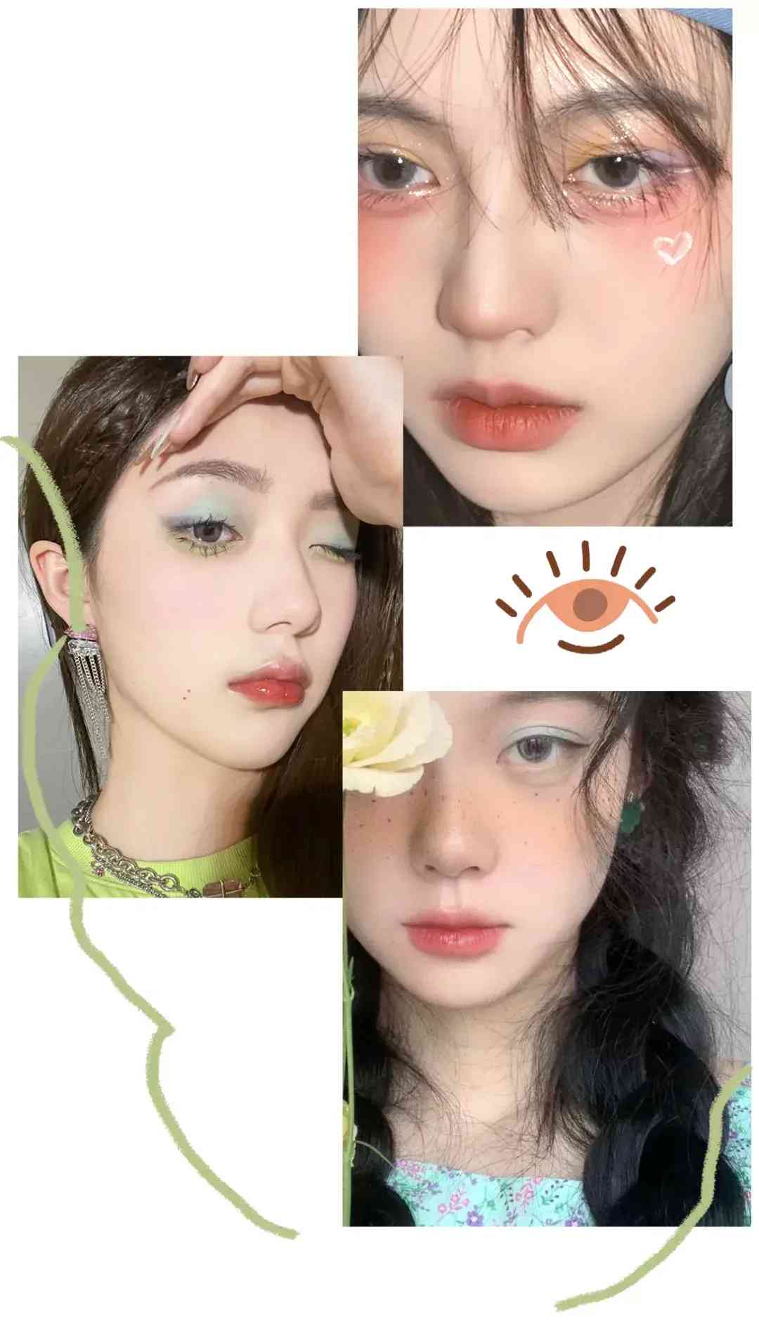 可别小看这妆容配色哦!你们想想看,眼看到对方的妆容,你会关注她有没有画眼睑下至、倒三角眼妆、微笑唇吗?