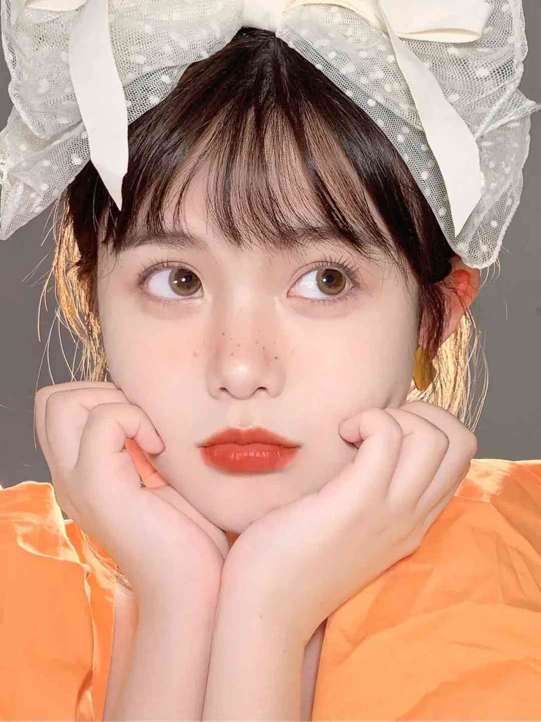 低饱和度的橘棕色眼影其实挺好驾驭的,下手不要太重,口红和腮红也按照同色系法则,选橙色、橘色就好。