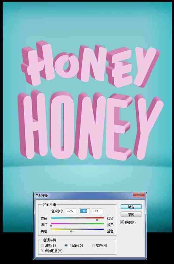4、进一步调整颜色,加深或减淡工具来涂抹调整,同时选出文字的前面部分,新建图层填充白色。