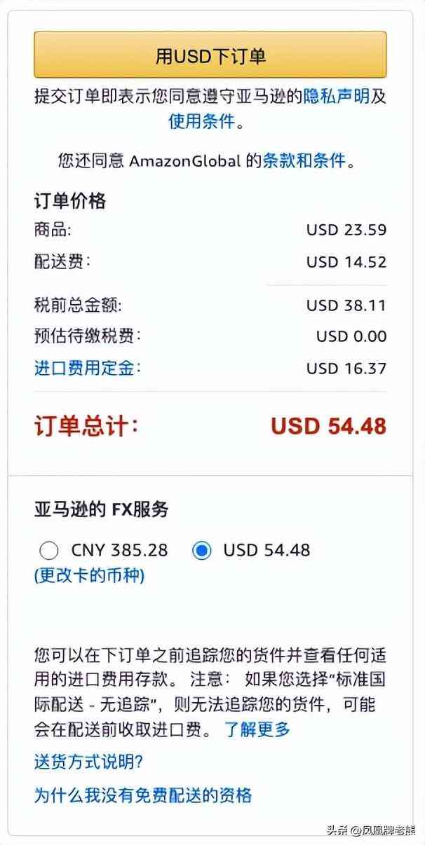 如上是在亚马逊美国使用美元和人民币支付时的比较。