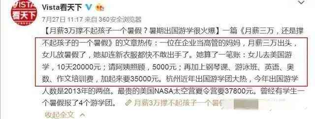 还有一则“月薪3万,撑不起孩子一个暑假”的新闻。