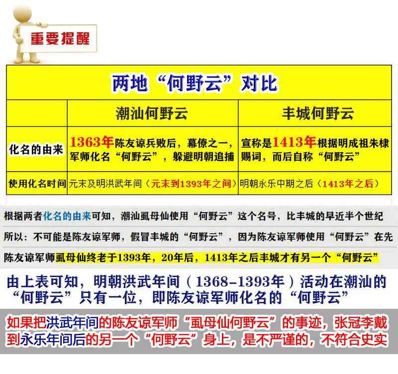 如果把洪武年间的陈友谅军师“虱母仙何野云”的事迹,张冠李戴到另一个时代,另外一个“何野云”身上,是不严谨的,不符合史实!