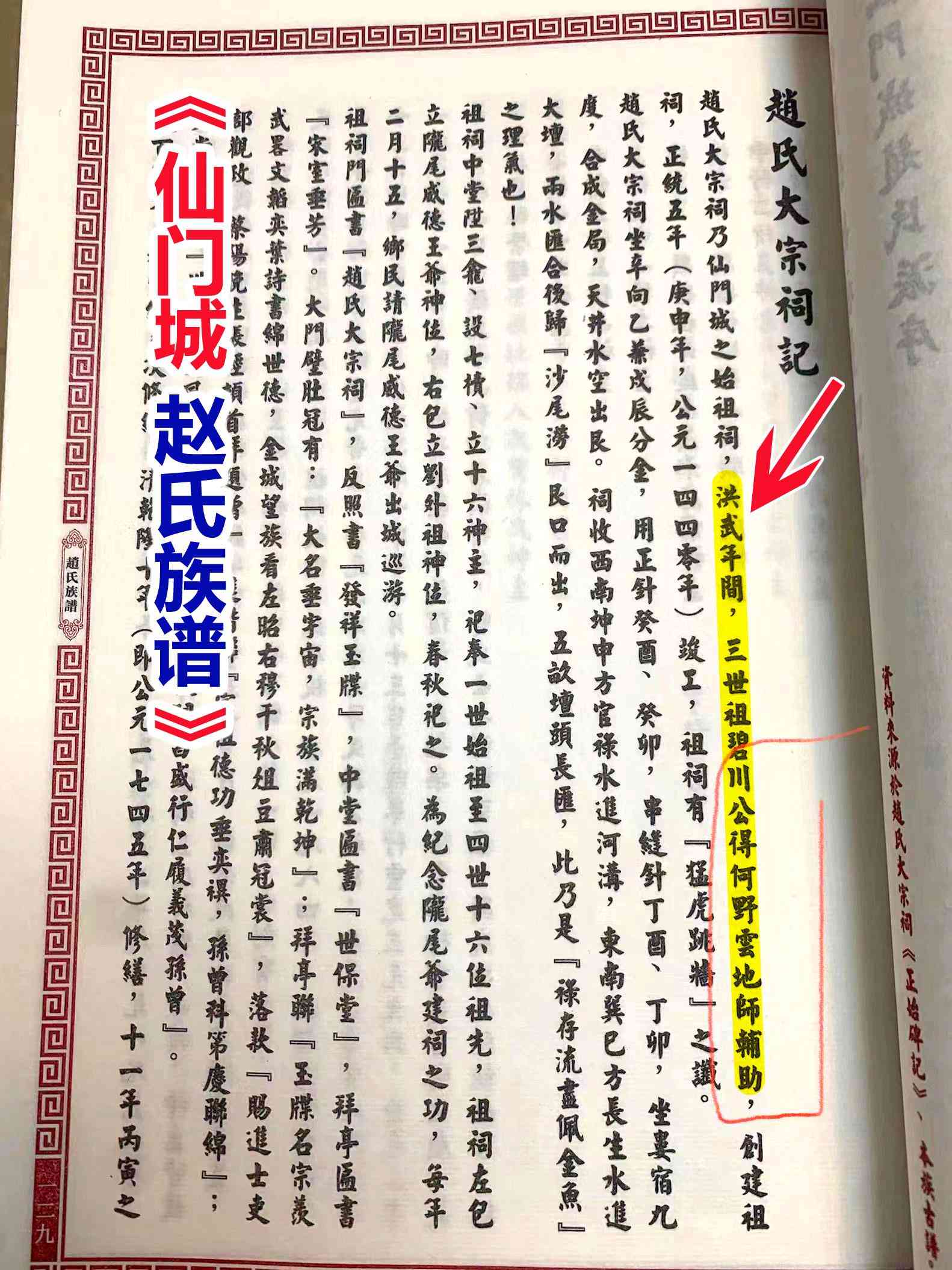 《仙门城赵氏族谱》大宗祠记