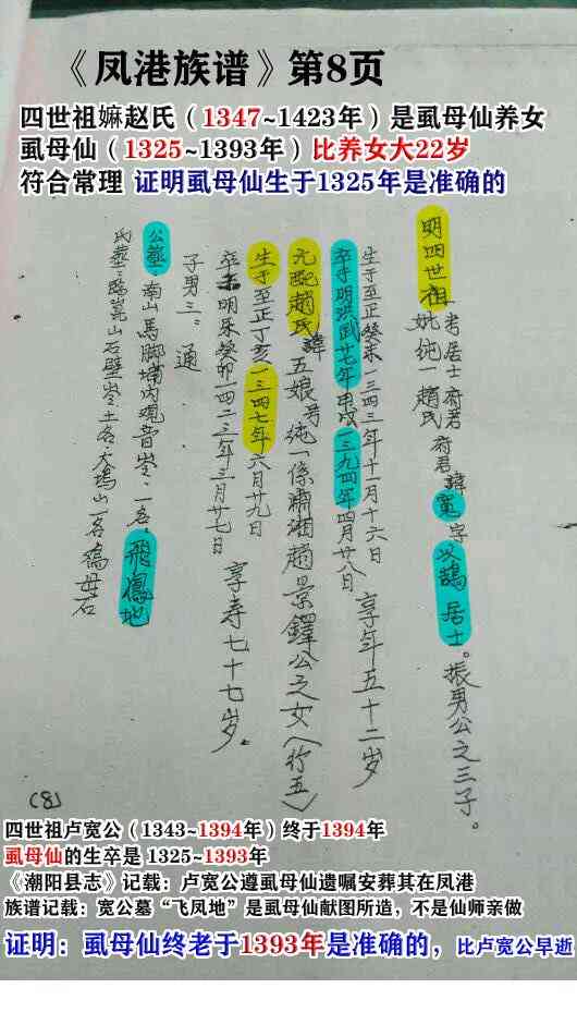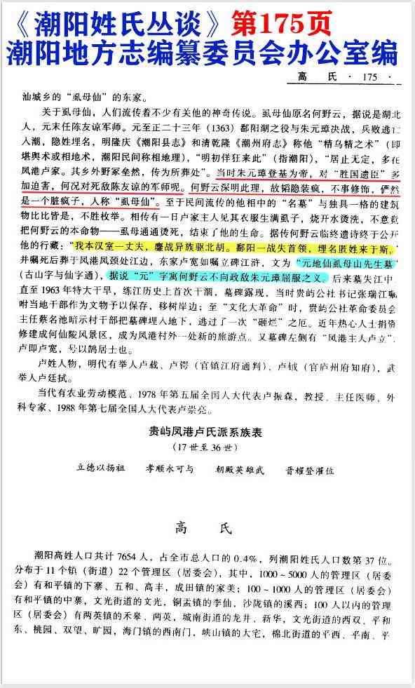 从四世祖嫲和祖公的生卒年的记载,还有葬地的记载,可以看出《凤港卢氏族谱》是实事求是的记载的。所以对于何野云的记载,也必然是实事求是的。