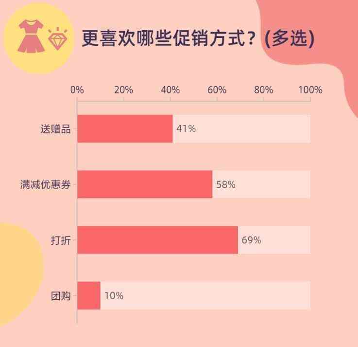 在了解到的促销品类方面,占比高达95%的美妆个护与服饰是绝对的“重头戏”,同时,数码家电、美食生鲜、母婴玩具品类的促销也都受到过半受访者的关注。