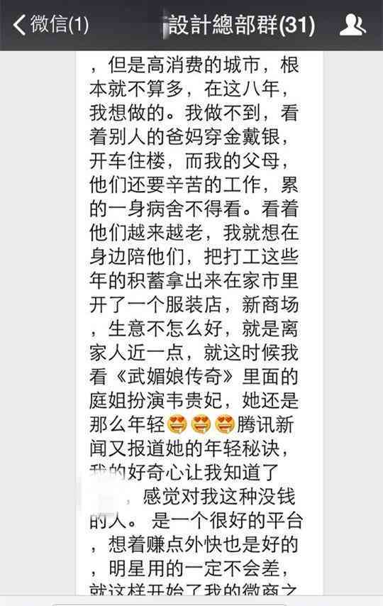 要知道,从事微商行业的绝大多数受众,都是文化水平不高,有大把空闲时间的中年女人。