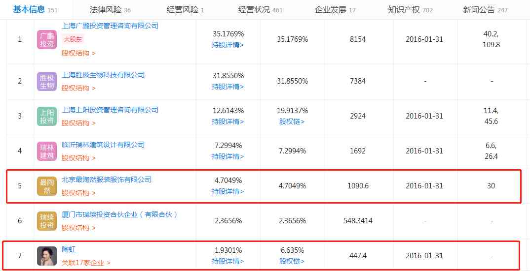 在陶虹名下,有个北京最陶然服装服饰有限公司,虽然没有挂靠徐峥的名字,却也是两人的夫妻店。
