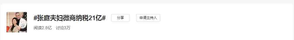 2019年1月,张庭夫妇微商纳税21亿的话题冲上热搜,吃瓜群众震惊不已。