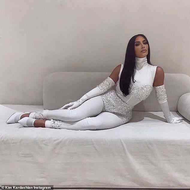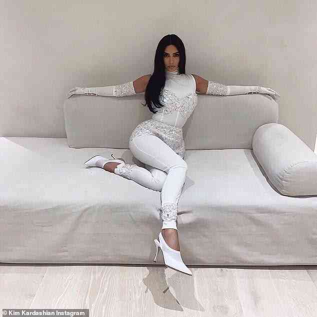 日前,金·卡戴珊在自己的社交平台上,放出了那天试穿这身衣服的照片。