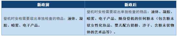 美国运输安全管理局(TSA)于2018年6月19日发表声明,根据美国再强化安保措施,美国政府将要求从2018年6月30日起,凡搭乘国际航班前往美国的旅客,除了经航空公司检查确认非属危险或危安物品的药粉、婴儿奶粉等大于或等于350毫升的粉状物品,均不能携带进入机舱。