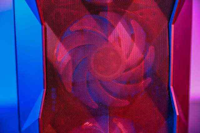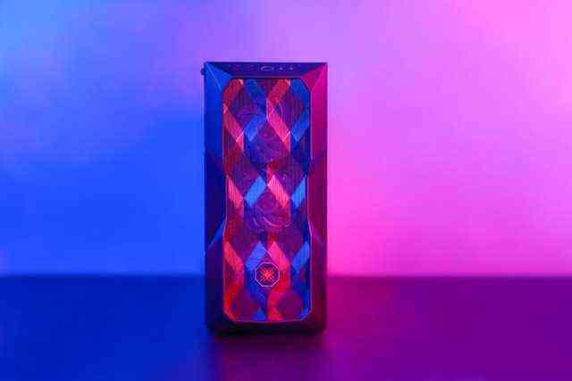 再来看看机身左侧,联想异能者酷冷TD500配有一块钢化玻璃,采用了3D立体钻切,开机后搭配多灯光硬件使用,可以折射出更迷幻的灯光效果。