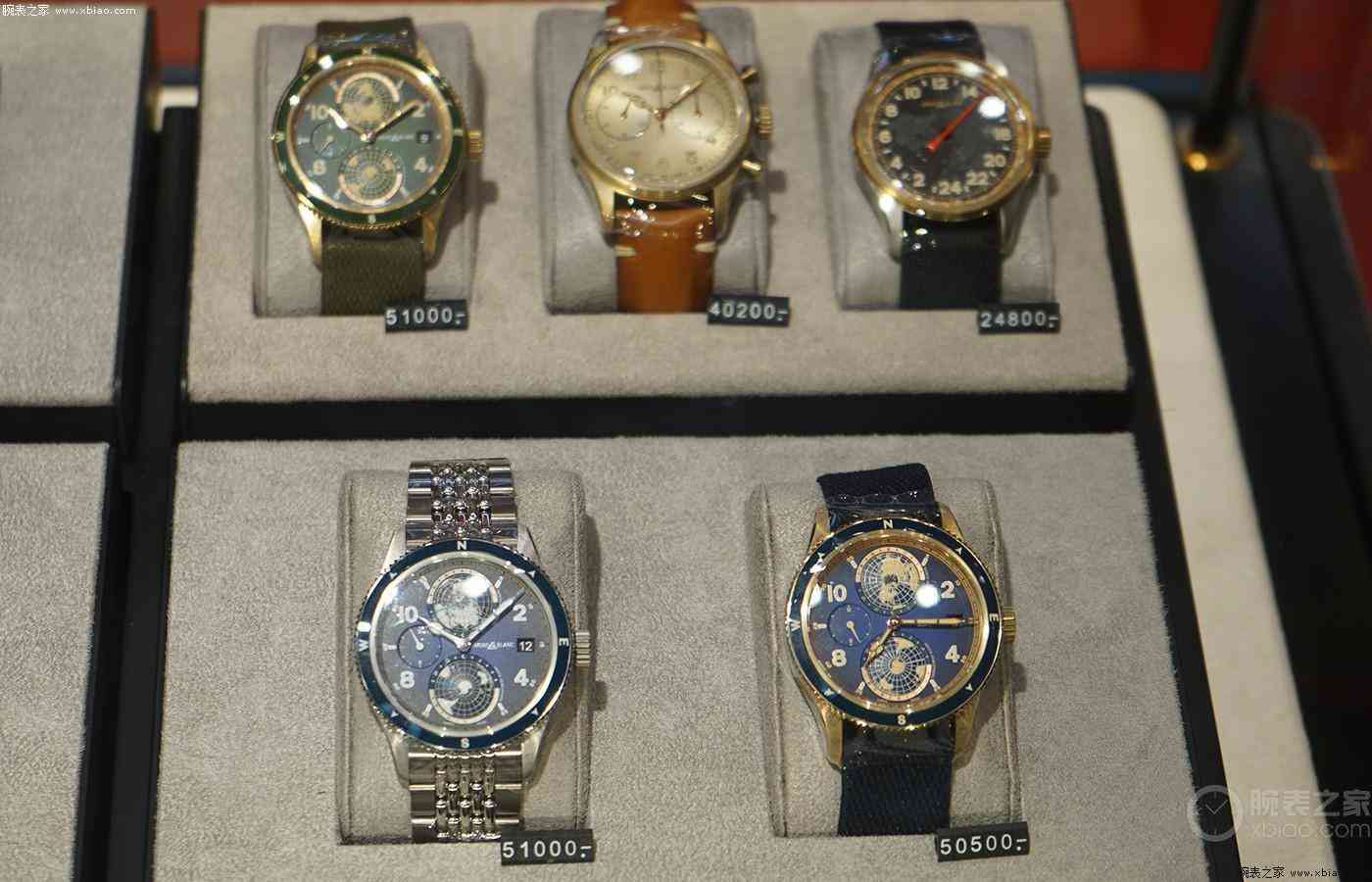 限时店还展出几款平日难得一见的臻品腕表,像是这两枚单钮计时按键的表款,右下款式采用珐琅制作表盘,搭配特殊的盘面设计。左上款式则使用大号罗马数字时标指示时间,配上表冠计时按钮让腕表尽显优雅个性。