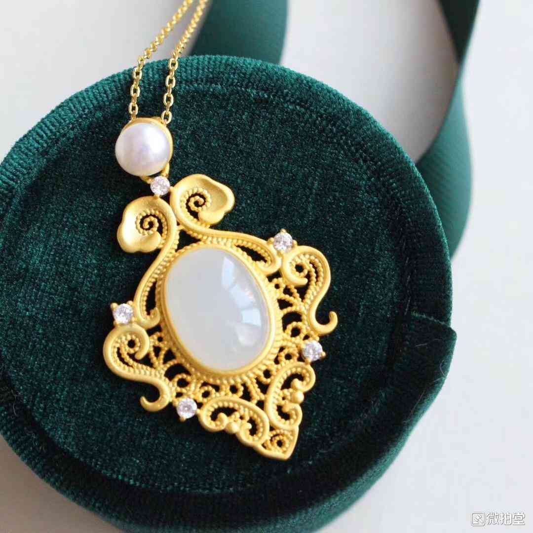 宫廷风和田玉吊坠项链 吊坠天然淡水珍珠 极致复古 上身太美了 纯银镀金镶嵌持久保色 项链16-18寸可调节尾链 美哭了 谁抢不到谁后悔