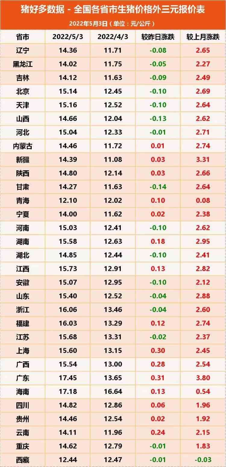 五一小长假第三天,猪价继续努力攀升,据猪好多数据监测显示,5月3日全国外三元生猪价格为14.95元/公斤,较昨日上涨0.07元/公斤,可以说是距离养殖户的生产成本又近了一步。#猪价#