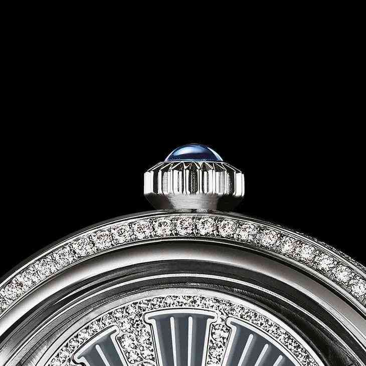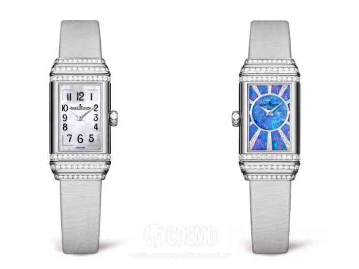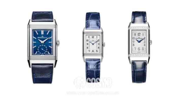 当然这个系列也有双面翻转(duetto),翻转过来的蓝色表盘与蓝色漆皮表带相配,当然都双面翻转了价格也贵了一倍。