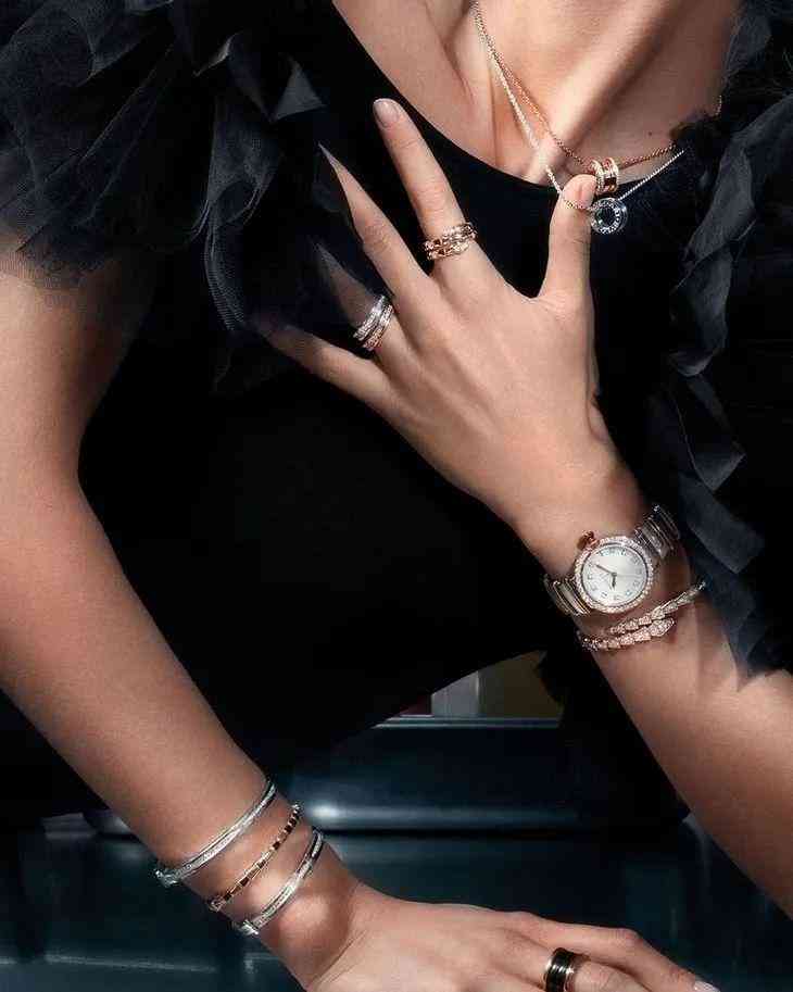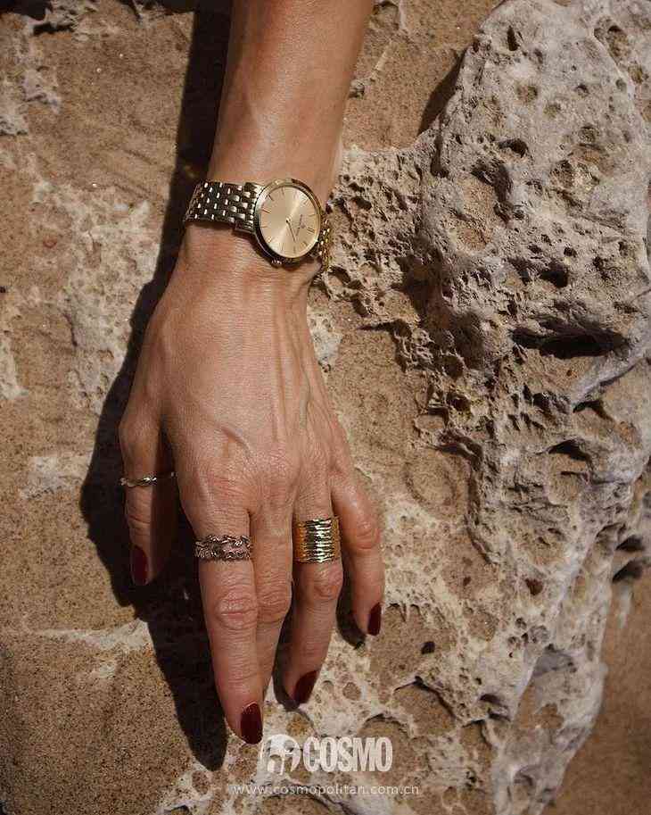眼下就到露胳膊露腿的季节了,自然不能让手腕空荡荡,金属腕带的手表和同是金属质地的饰品叠加在一起,增彩效果显著。