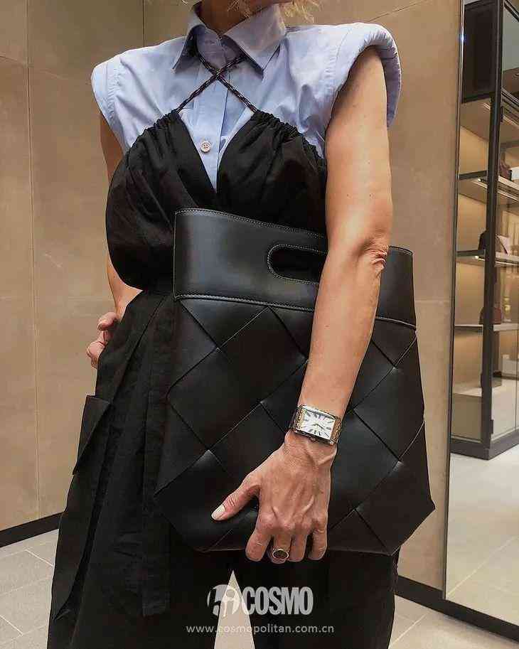 不光是饰品,手上拎着金属装饰的包包也可以很好地呼应起来。