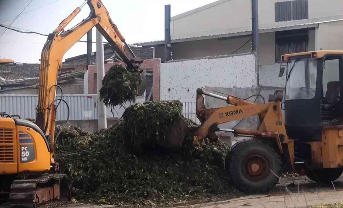 将这些“烂菜叶”带走加工时,也是选择了最简单粗暴的方式,用挖掘机来进行搬运工作。