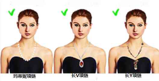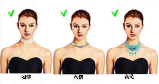 ✔ 圆形脸的项链选择:圆脸的姑娘选择项链最佳长度到胸部, 让比较有菱角的厚重吊坠塑造V型的效果。拉长脸型,弱化圆形脸给人的厚重感。 如果是比较短在锁骨处的项链,最好避免选用圆型、扇形等比较圆的吊坠,避免显得脸更圆。不要戴贴颈式的,或是链子太粗跟太复杂的。这样会给人一种很紧的厚重体积感。会显胖显土。