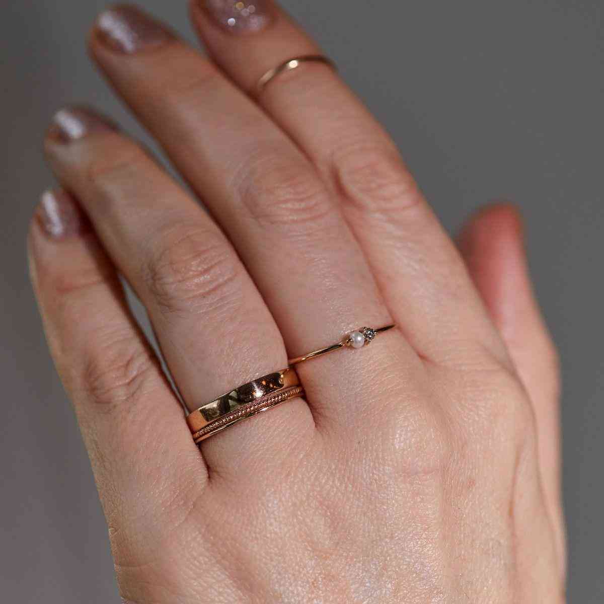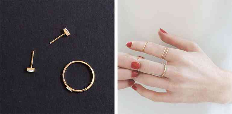 Catbird 认为戴戒指的美学,不是双手只戴一个,是每根指头都要戴,而且要戴很多。需要注意的是,每个戒指都要足够纤细,细到足以让你连着套下 4 到 5 个,把它们一直堆到指关节处,这样就够时尚了。所以,认同这种戒指潮流的人也总是一买就买很多。
