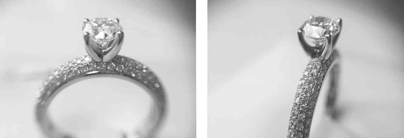 她家的钻不论大小,切工都不错,都能看到八星八剑。所有的戒指能在内壁镶有特殊意义的心诺彩钻,也能免费刻字。下单后会送到日本订制,所以基本上要等6周及以上才会拿到成品戒。