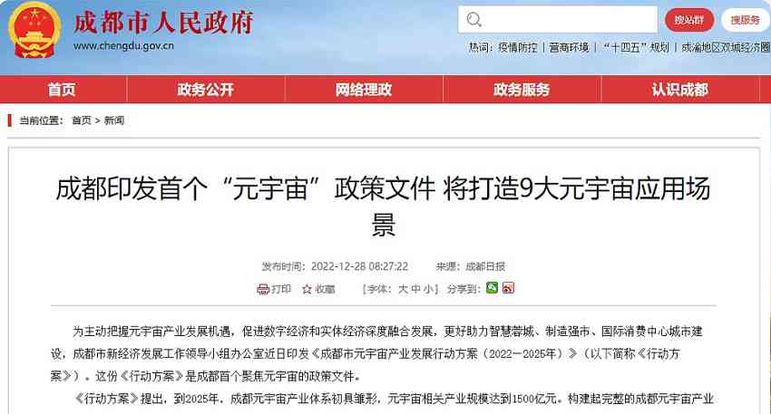 ●成都印发“元宇宙”政策文件
