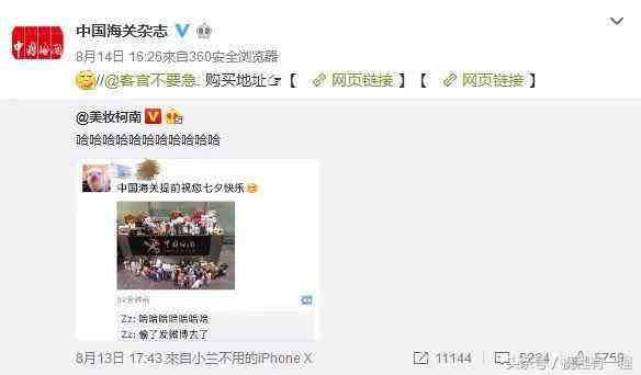 今年七夕之际,一张来自中国海关的七夕祝福在朋(代)友(购)圈疯转: