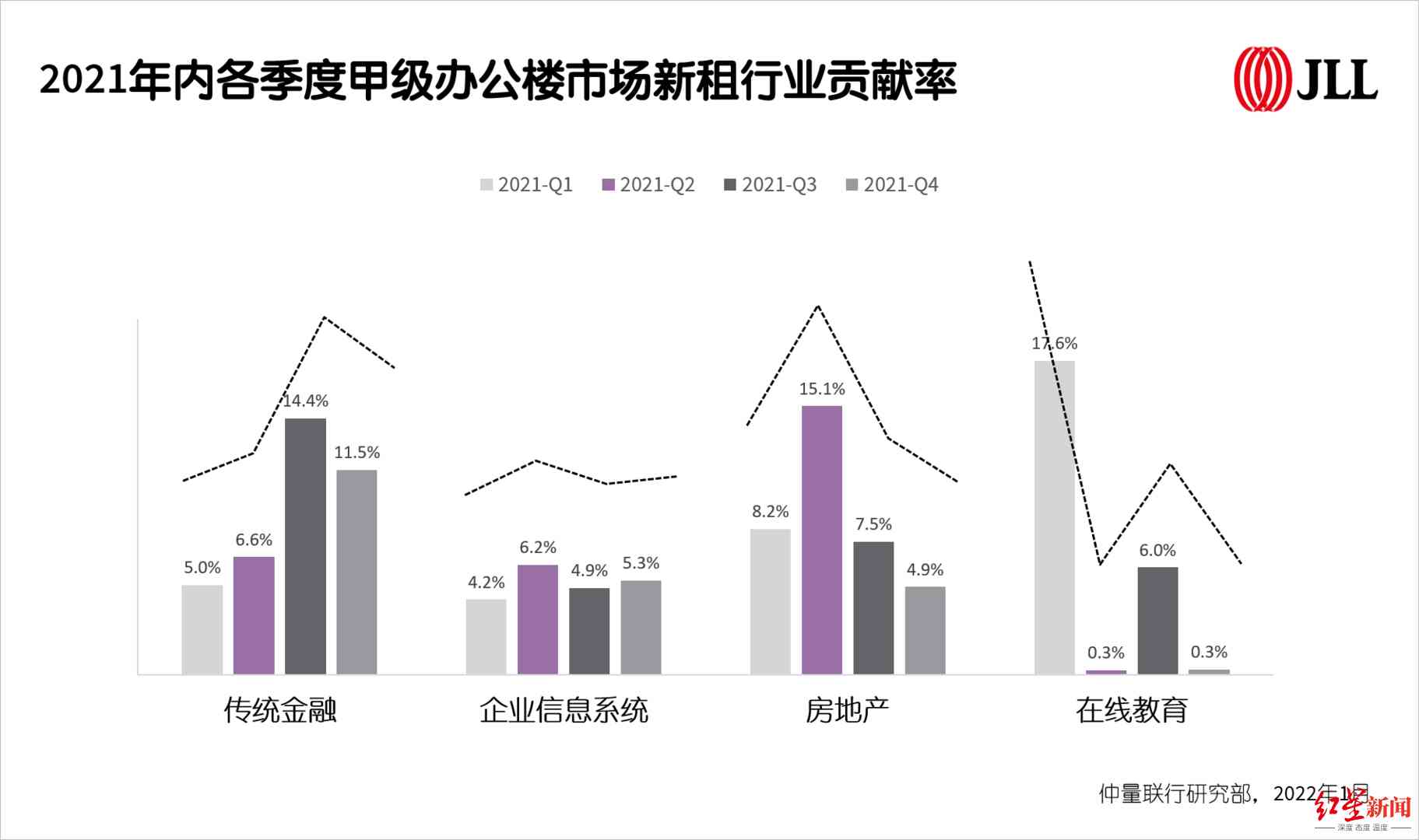 数据显示,甲级办公楼全年净吸纳量录得24.1万平方米,同比增长一倍,恢复到2019年疫情前水平。其中,科技互联网行业成为关键词,对新去化面积的贡献率高达23.7%。