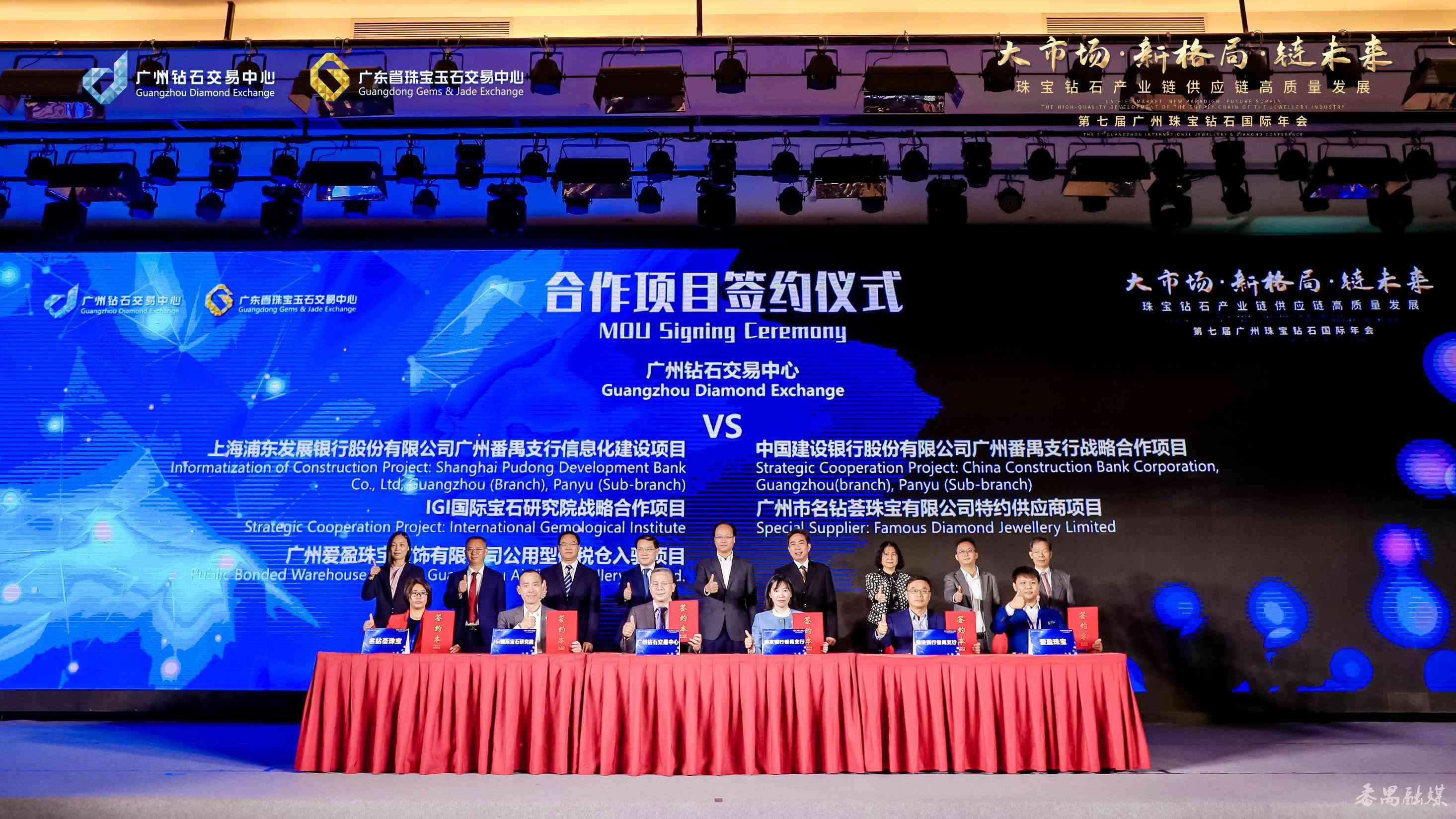 活动现场,广钻中心与上海浦东发展银行广州番禺支行信息化建设项目、中国建设银行广州番禺支行战略合作项目、IGI国际宝石研究院战略合作项目、广州市名钻荟珠宝有限公司特约供应商项目、广州爱盈珠宝首饰有限公司公用型保税仓入驻项目与合作伙伴举行签约仪式,汇聚行业内外资源,积极推动互联网、大数据、金融赋能产业数字化转型,支持珠宝钻石产业实体经济发展,助推珠宝钻石产业链供应链升级。