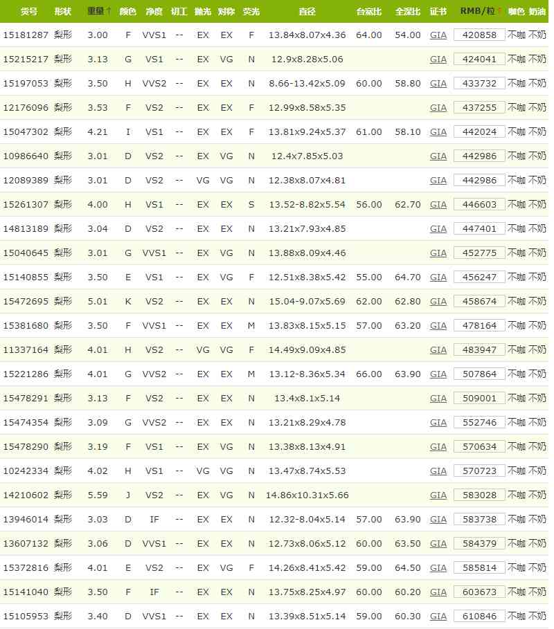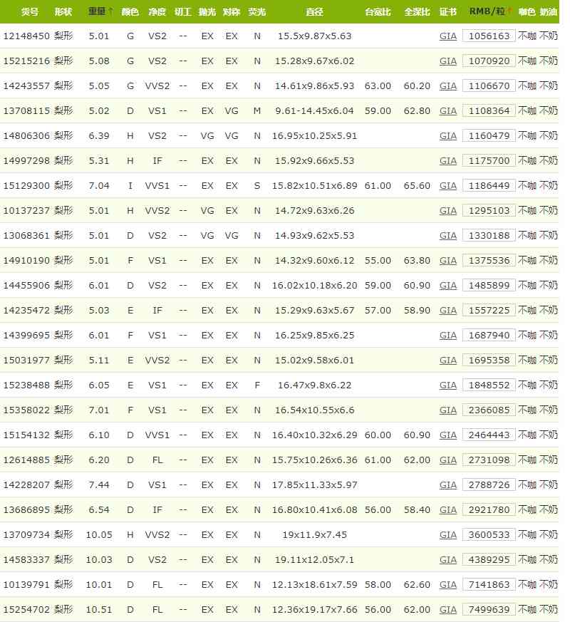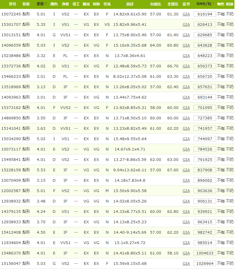 颜色:D~N 净度:FL~VS2 不咖 不奶