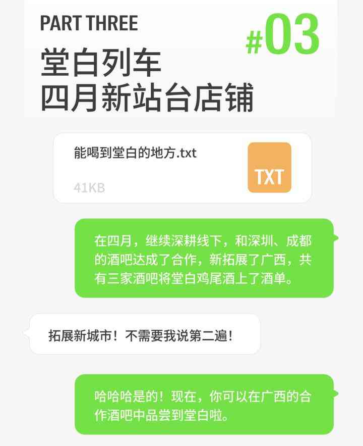 新酒饮品牌堂白不仅在积极地和深圳、成都、广西酒吧一同合作推出使用堂白酒为基酒的鸡尾酒,还在线上积极地教大家如何用自己的产品调制一杯口感有较大差异的鸡尾酒,只愿你爱屋及乌,爱上白酒。