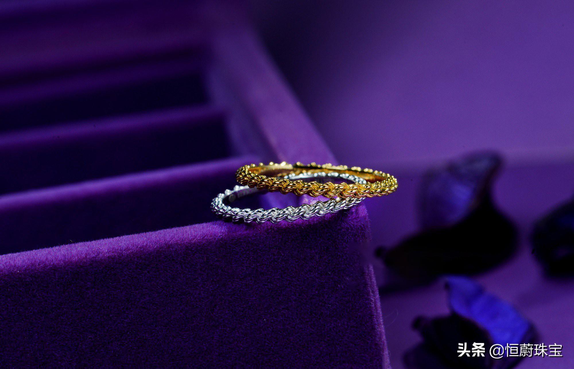 宝诗龙的品牌合作明星周冬雨经常佩戴相关珠宝和首饰出席活动,宝诗龙SERPENT BOHÈME系列也有一个婚戒系列,这款婚戒款式简单,18K金材质的戒指由类似的绳结缠绕一起,颇有象征夫妻二人两心交织,团结一致,白头偕老的寓意,价格便宜,6500即可入手顶奢品牌,你不会错过的吧。