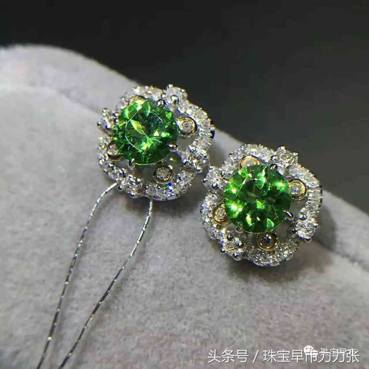 是价值仅次于翠榴石的石榴石,这种宝石以带蓝色调的绿色为佳,黄色调会降低颜色品质
