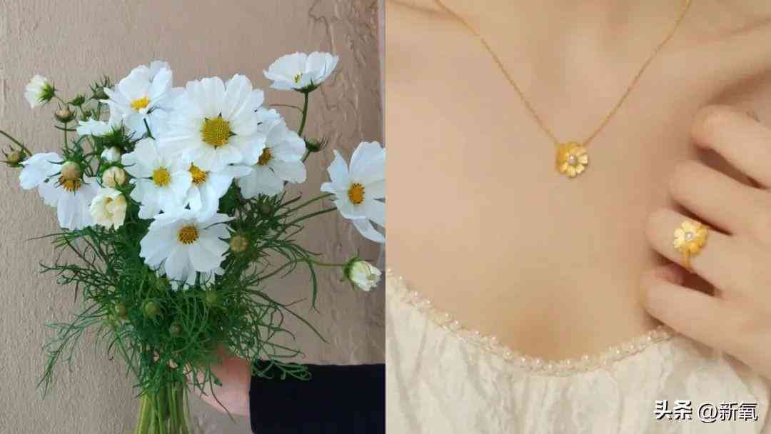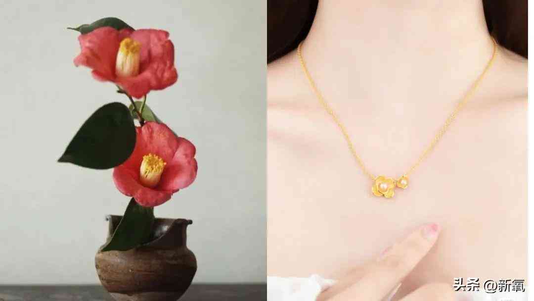 最近山茶花也很流行,算是又和国际珠宝款式接轨。对比有些国际大牌用的假材质珠宝,黄金看着更贵气。