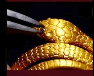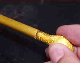 运用在黄金上,就是采用纯手工的方法对黄金进行精雕细琢。