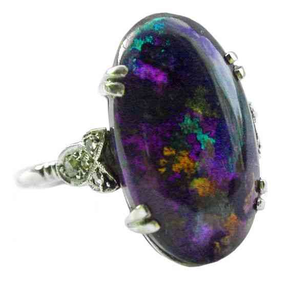 在深色的胚体色调上呈现出明亮色彩的,我们称之为黑欧泊。黑欧泊出产于澳大利亚新南威尔士州的莱顿宁瑞奇,是最著名和最昂贵的欧泊品种。黑欧泊并不是指它完全是黑色的,只是相比胚体色调较浅的欧泊来说,它的胚体色调比较深。