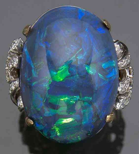 艺术家杜拜(DuBle)写出了富有诗意的描述:“当自然点缀完花朵,给彩虹着上色,把小鸟的羽毛染好的时候,她把从调色板上扫下来的颜料浇铸在欧泊石里了”。