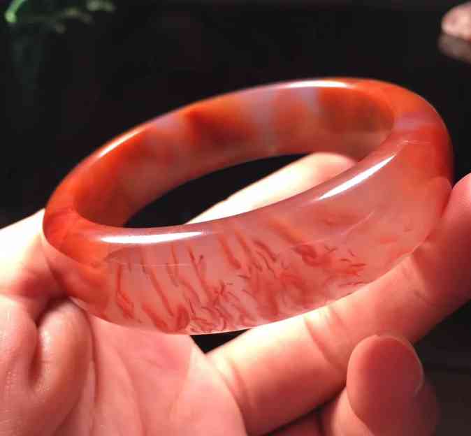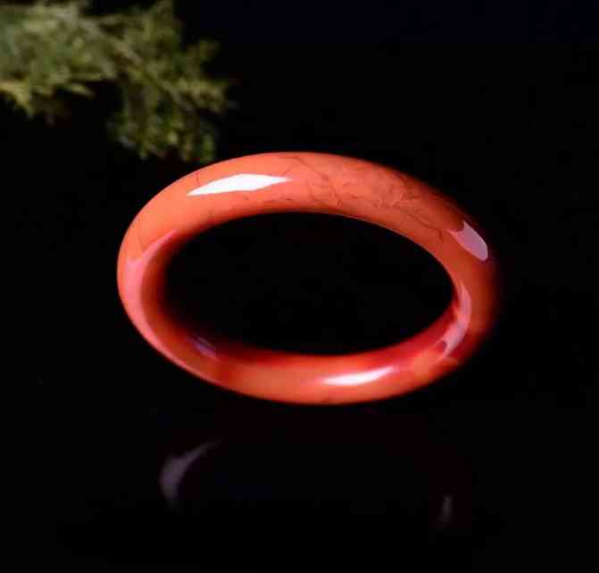 南红的以色闻名,色泽自然很重要,常见的主要有冰飘、柿子红和火焰纹三种南红手镯,其以柿子红价值最高。