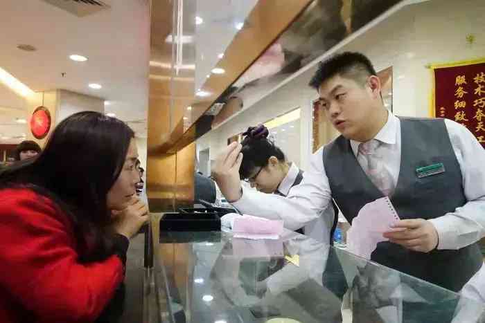这个窗口还分成2个队,您先要排验金队,专业人员会将顾客带来的旧金饰进行称重等检验。
