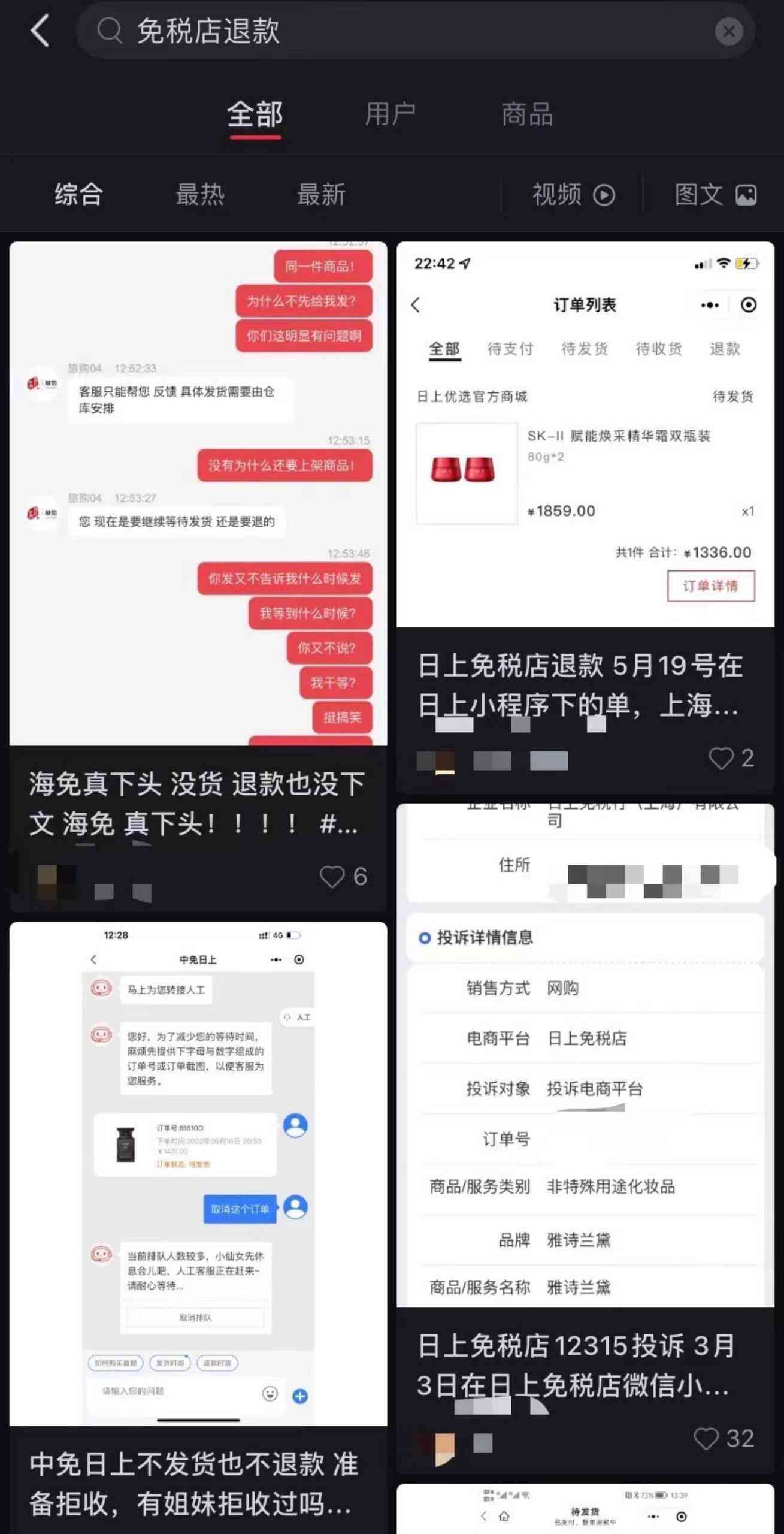 “cdf会员购海南上退货真心酸!”“中免会员不给退货退款,刚下单半小时。”“在中免日上购物,不发货不退款还没客服!”“日上优选小程序退款超慢。”